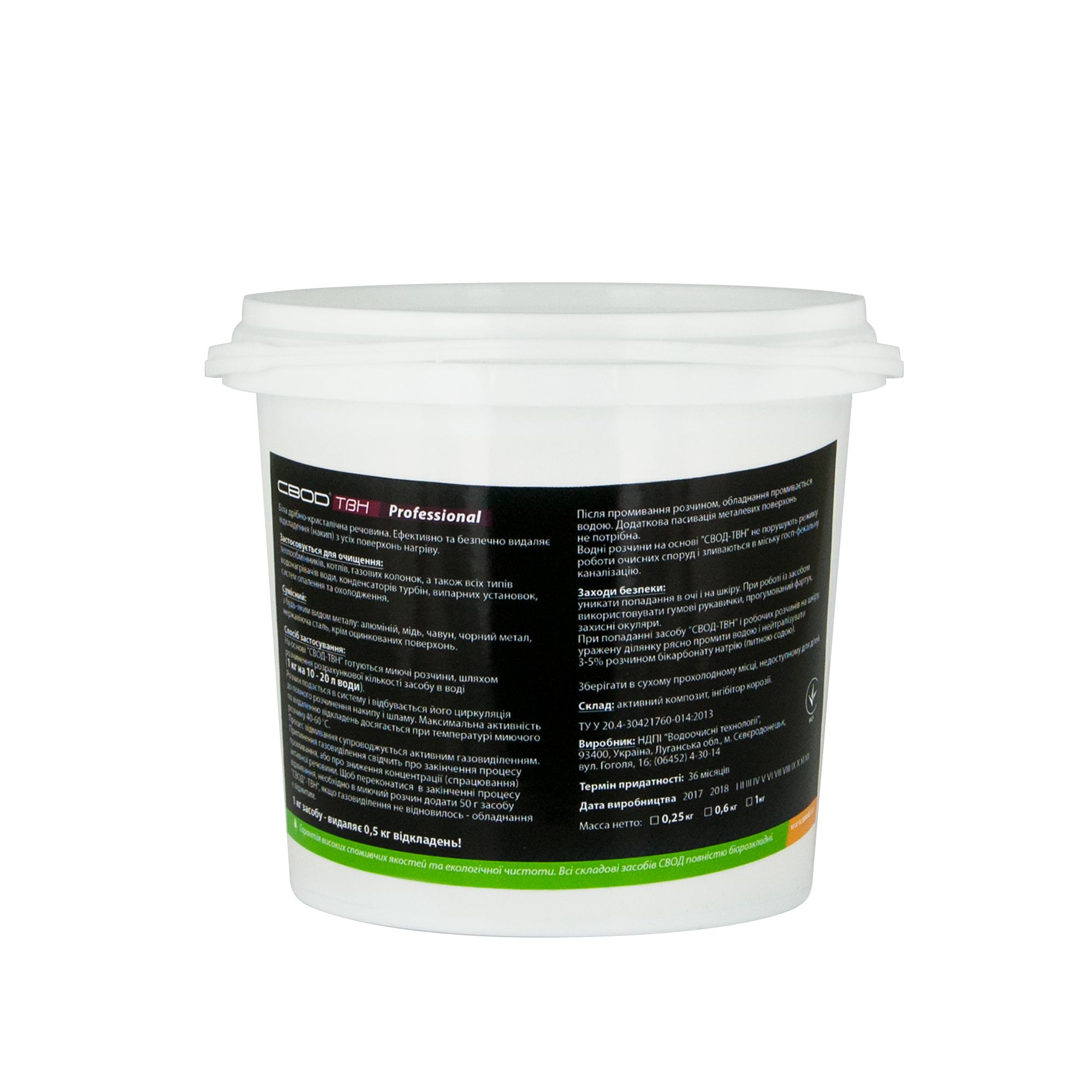 Являє собою білу субстанцію від сухого до пастоподібного стану. Ефективно і безпечно видаляє відкладення (карбонатно-кальцієві і залізоокисні) з усіх поверхонь нагріву.